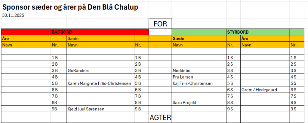 Oversigt over åre og sædemuligheder pr. 30.11.2025: